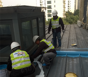 施工前应仔细检查金属屋面,确保金属屋面原防水层无积尘、积水、破损处,不符合上述情况的分别作如下处理: